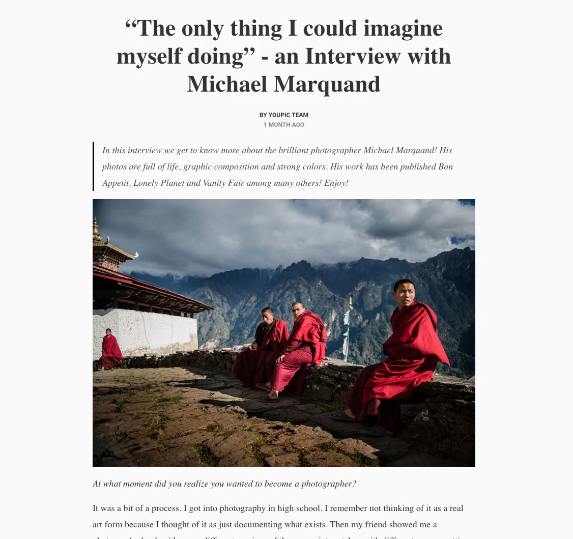 Writing Samples Himalayan Backcountry - Sidetracked Magazine A Culinary Adventure in the land of the Thunder Dragon- Sweet Paul Magazine Road trip under the midnight Sun: An Icelandic Voyage - Sweet Paul Magazine An American in Havana - Sweet Paul Magazine Get Lost Along the Mekong - Upward magazine Travel Reflections- Bhutan Culture Clash- Suitcase Magazine A Million Reasons to return- Sweet Paul Magazine City of Color - Lodestars Anthology Press